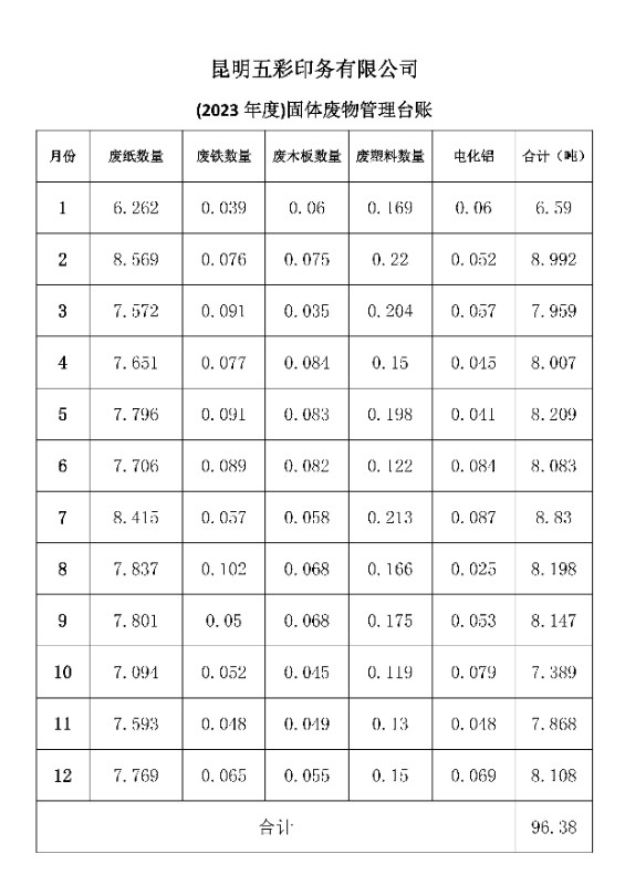 【公示】昆明五彩印務(wù)有限公司——2023年度固體廢物處理臺(tái)帳