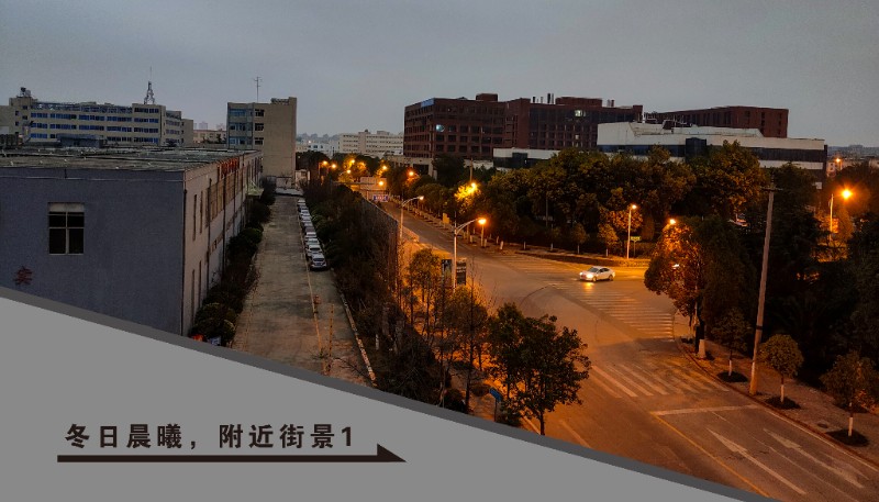 冬日清晨,附近街道的燈光依然明亮